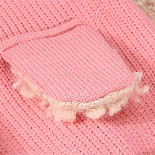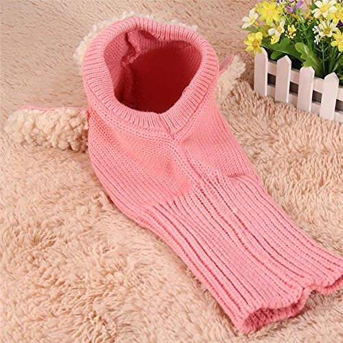 Pawaca ニット帽 ニットキャップ 帽子 子ども ベビー キッズ 女の子 男の子兼用 フード付 ボア ネックウォーマー 防寒 お祝い ピンク