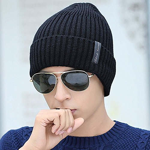 Pawaca ニット帽 タグ付き ニットキャップ 帽子 秋冬春用 ボーイズ メンズ ユニセックス帽子 フリーサイズ  ブラック