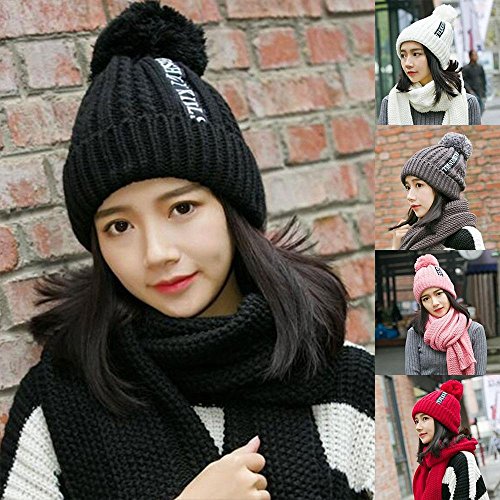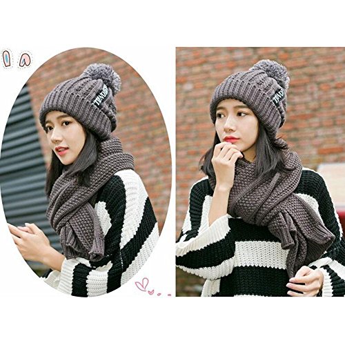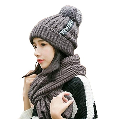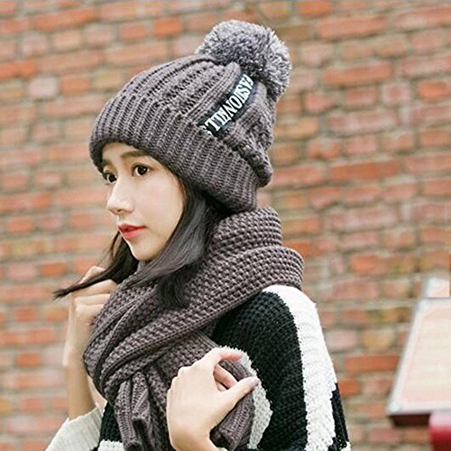 Pawaca ニット帽 レディース ポンポン 耳あて付 かわいい 秋冬 防寒 おしゃれ 小顔効果 ニットスカーフ 2点セット ポンポン グレー