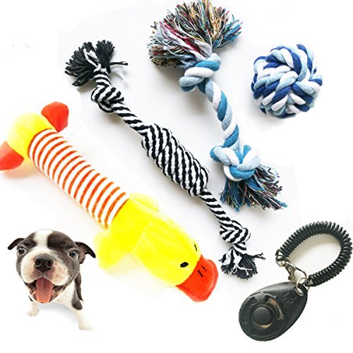 Dog ToysDog Teething Toys Set Dog Rope Toy Chew Toy Squeaky Duck For Puppy With Train Clicker Christmas Gift [並行輸入品]