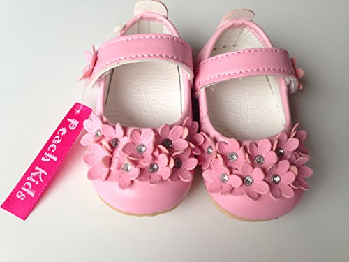 【Peach Kids】小花モチーフ ベビーシューズ 女の子フォーマルシューズ キッズシューズ 子供靴 七五三 発表会 結婚式 入学式/ピンク ホワイト ローズピンク (15:内寸11.5cm, ピンク)