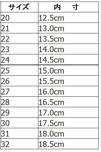 - 【サイズ】20:内寸12.5cm/22:内寸13.5cm/24:内寸14.5cm/26:内寸15.5cm/28:内寸16.5cm