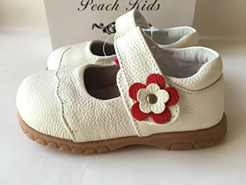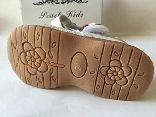 Peach Kids お花モチーフ ベビーシューズ 女の子フォーマルシューズ キッズシューズ 子供靴 七五三 発表会 結婚式 入学式/三色展開 ピンク ホワイト レッド ブラック (22 13.5cm, 白ホワイト)