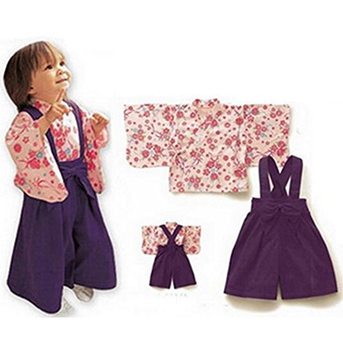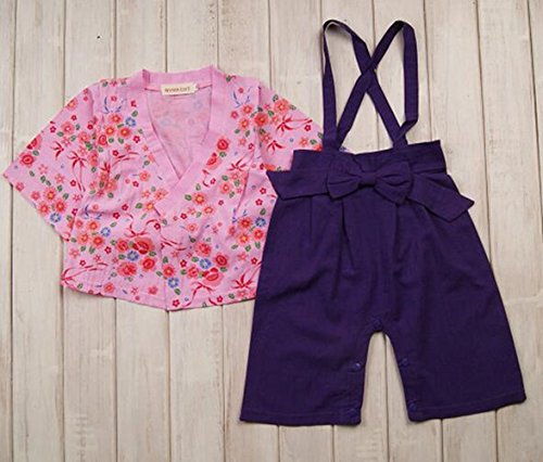 【Peach Kids】 ベビー 服 キッズ 女の子 ロンパース カバーオール 紫 袴風 和装 着物 フォーマル お宮参り 七五三 赤ちゃん 記念 (95cm)