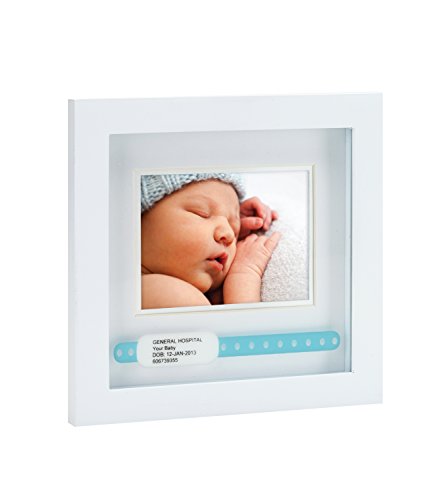 Displays your baby's little hospital I.D. bracelet;Hand-finished wooden frame;Makes a great gift for expecting parents;Acid-free beveled mat, with silver background board;Holds one 3 x 4 photo