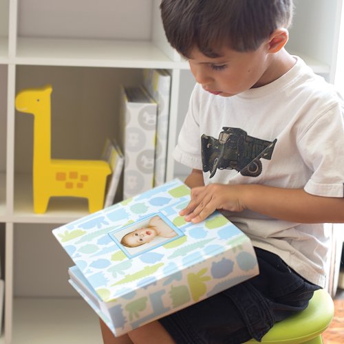 Dutch fabric wrapped with cute animal print and photo opening;Holds 200 4x6photos;Capture all of your favorite memories with your little one
