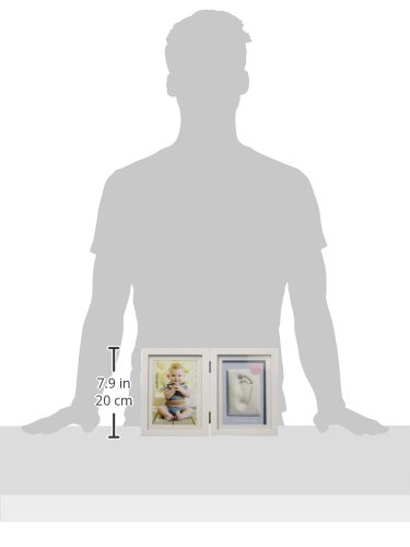 Sophisticated frame for displaying a little hand or footprint along with your favorite photo;Hand and foot impressions are easy to create! No mixing, no mess, and air dries within 24-48 hours; 100% baby safe;Includes no mess impression material, rolling pin, clay shaping ruler, and a pink/blue reversible background;Hand-finished, hinged, white wooden shadowbox frame with acid-free beveled mat sits perfectly on any desk or tabletop;Photo insert holds one 4 x 6 photo. Frame measures 7.5W x 11.69H x 1.38D;Specializing in gifts and keepsakes, Pearhead offers everything from unique picture frames, photo books, ornaments and more to celebrate babies' special moments. With a clean aesthetic and simply charming designs, these pieces will delight you-and the new moms in your life-for years to come.