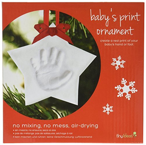 Create a wonderful ornament featuring your baby's hand or footprint, Easy to create; no mixing, air drying, no mess, Includes no-mess impression material, rolling pin, plastic hole punch and clay shaping ring, Red satin ribbon included to hang your ornament on the tree, Includes cookie cutter to make adorable star-shape