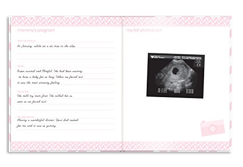 Record your baby's cherished memories with this journal and album in one;50 fill-in, acid-free pages to record memories and preserve your photos;Easily create your baby's precious print with the included Clean-Touch Ink Pad ensuring baby's skin never touches the ink; 100% baby safe;Includes Clean-Touch ink pad and 2 imprint cards; Ink pad is for two-time use maximum, accommodates hands/feet up to 3.5 long x 2.25 wide, and is for newborns only;Modern, chevron book cloth cover with binding and openings for both your baby's 3 x 3 photo and one handprint or footprint