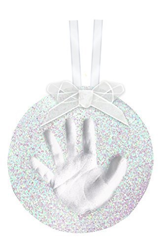 Create a wonderful ornament featuring your baby's hand or footprint, Easy to create; no mixing, air drying, no mess, Includes no-mess impression material, rolling pin, plastic hole punch and clay shaping ring, Red satin ribbon included to hang your ornament on the tree, Classic Round Shape
