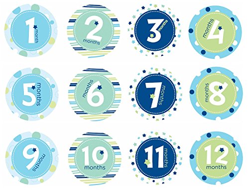 Our baby milestone belly stickers are a fun, unique way to capture and share your baby's first year with friends and family. Track from one month up to one year with these 12 easy to peel stickers. Just place a sticker on your baby's little belly each month and snap a photo. Then share with friends and family at home or on social networks. The cute designs and colorful patterns will have you smiling all year round; a great keepsake and adorable gift for any expecting parent. Perfect for Instagram, Facebook, twitter, and other social networks.