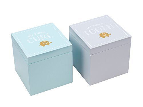 Pearhead Baby's First Tooth and Curl Wooden Keepsake Box Set Mint/Gray [並行輸入品]