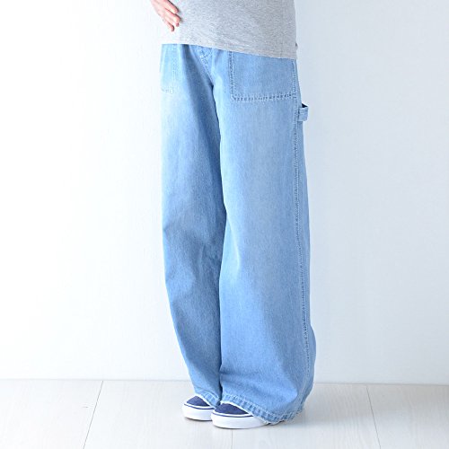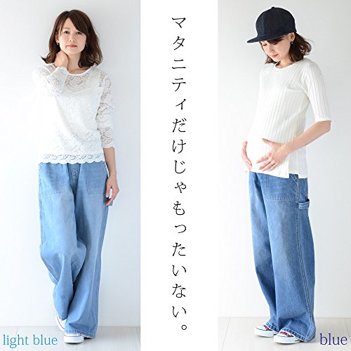 Pearls おなか周りが決め手!妊娠初期~臨月~産後も快適♪ おなかノンストレス♪ マタニティ ペインターデニムパンツ (M size, light blue)