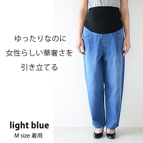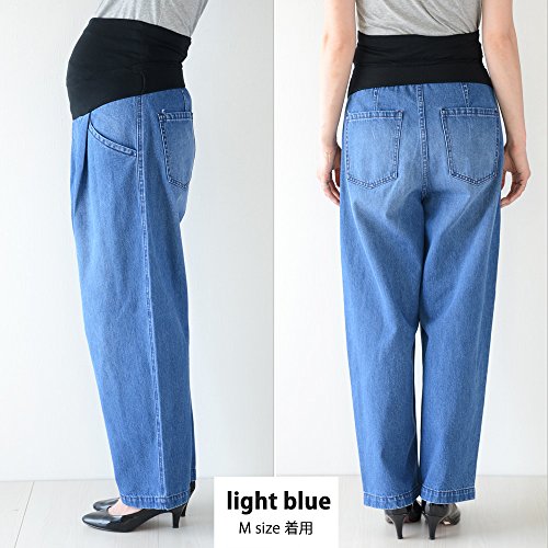 Pearls おなか周りが決め手!妊娠初期~臨月~産後も快適♪ おなかノンストレス♪ マタニティ ビッグテーパードデニムパンツ (L, light blue)