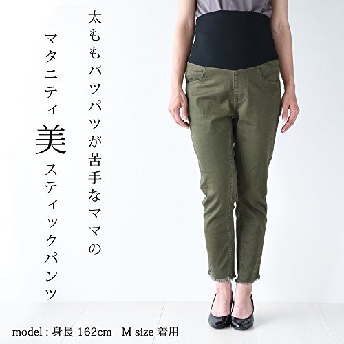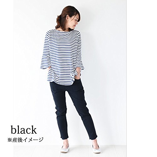 Pearls おなか周りが決め手!妊娠初期~臨月~産後も快適♪ おなかノンストレス♪ 抜け感のある大人カジュアルを演出する♪ マタニティカラースティックパンツ 17s-pt108 (L size, black)