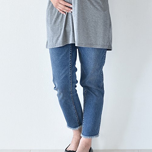 Pearls おなか周りが決め手!妊娠初期~臨月~産後も快適♪ おなかノンストレス♪ こなれ感を演出する♪アンクル丈の マタニティデニムスティックパンツ 17s-pt107 (L size, blue)