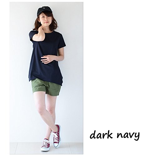 Pearls マタニティママから授乳ママまで♪ 変形ドレープヘムデザインの 授乳口つきTシャツ (dark navy)