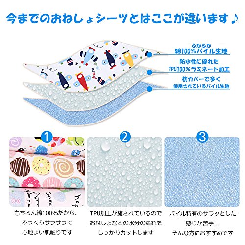 【Pedonir】おねしょシーツ 防水シーツ 70×85cm ベビーベッド ベビー 赤ちゃん 綿 防水 蒸れにくい 寝汗 ペットシーツ 犬 猫 おねしょ対策 (ブルー 飛行機)