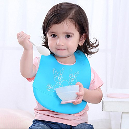 【Pedonir】よだれ掛け ベビー 赤ちゃん 幼児 エプロン ビブ 可愛い シリコン製 食事 片付け (ブルー 象さん)