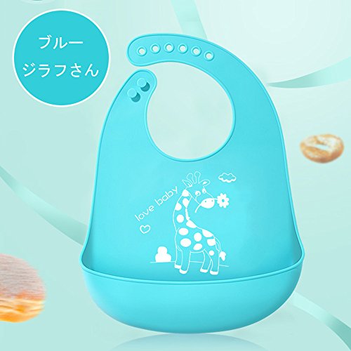 【Pedonir】よだれ掛け ベビー 赤ちゃん 幼児 エプロン ビブ 可愛い シリコン製 食事 片付け (ブルー ジラフさん)