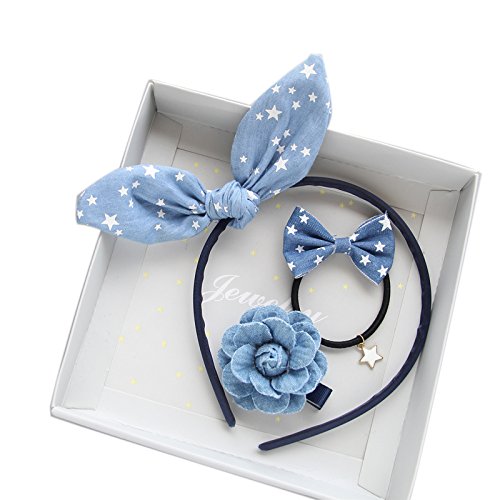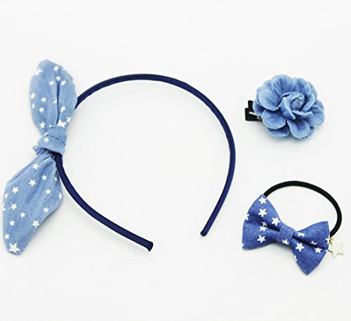 【Pedonir】3点セット 赤ちゃん カチューシャ ヘアクリップ リボン 子供 かわいい プレゼント ブルー 蝶結び