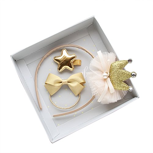 【Pedonir】3点セット 赤ちゃん カチューシャ ヘアクリップ リボン 子供 かわいい プレゼント クラウン 王冠 (ゴールド)