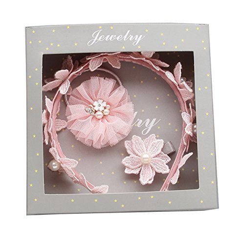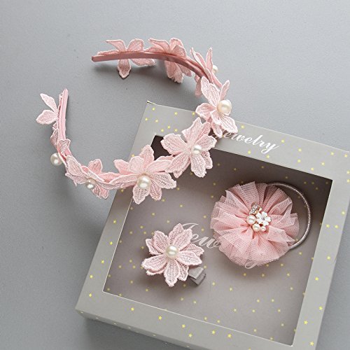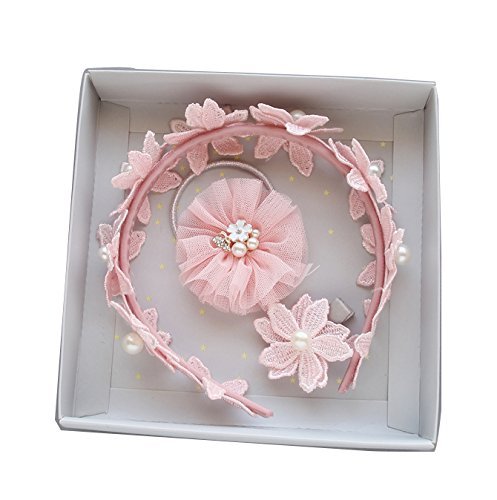 【Pedonir】3点セット 赤ちゃん カチューシャ ヘアクリップ リボン 子供 かわいい プレゼント ピンク 花 (スタイル B)