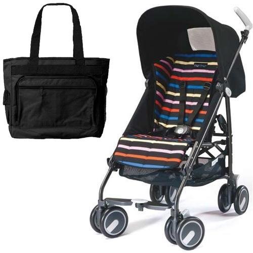 Peg Perego Pliko Mini Stroller with a Black Diaper Bag Neon by Peg Perego
