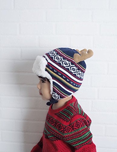 (ピーキー)Peigee ボンボン付き 鹿 クリスマス!帽子 耳付き 耳あて あったか ベビー キッズ ニット帽 おしゃれ 子供 女の子 男の子 ハット キャップ プレゼント ギフト 誕生日 出産祝い 防寒グッズ 防寒 秋 冬