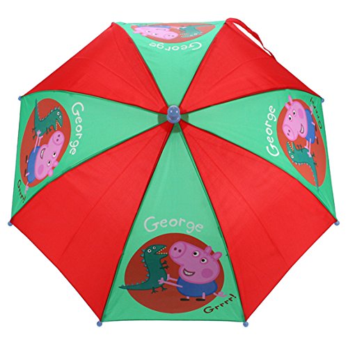 The Peppa Pig George Dino Umbrella is a bright brolly covered with images of George and Dino! This umbrella is specifically designed for a child to use with a small grip handle. This fun yet practical brolly will surely keep your little one dry and smiling!