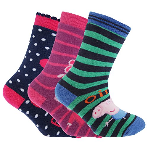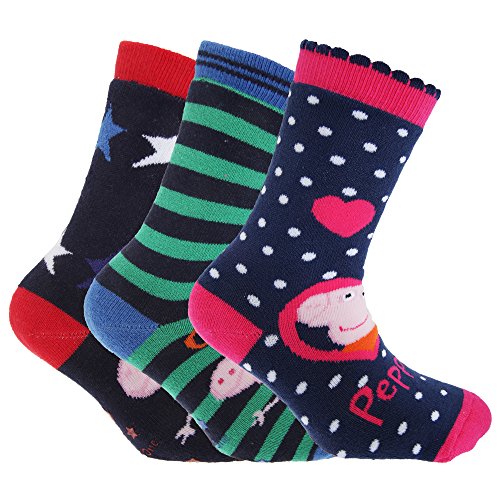 ペッパピッグ オフィシャル商品 キッズ・子供用 スリッパソックス 滑り止めつき靴下 (3足組) (EUR 23-26) (ネイビー)
