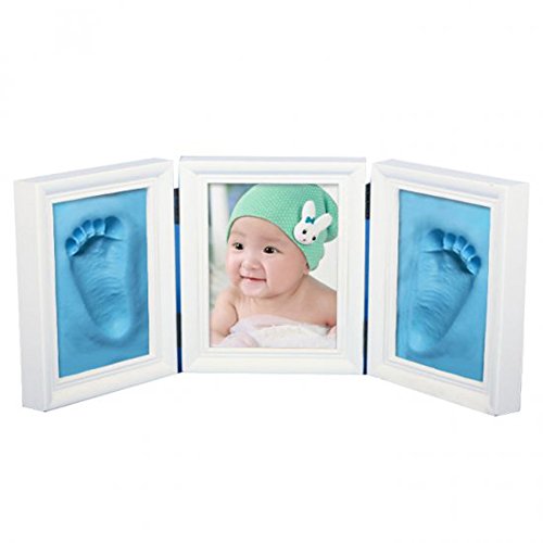 フォトフレーム 赤ちゃんの手形 足型 写真立て 可愛い ベビー記念品 ギフト 安全な非毒性粘土 出産祝い 記念日 (ブルー)