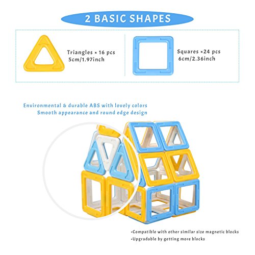 Peradixスーパー磁気ブロックBuilding Construction Stacking magformerssetブルーとイエローの想像力教育 – 40個