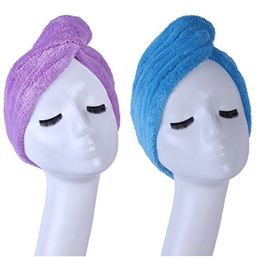 YYXR Microfiber Hair Turban Towel Wrap - Super Absorbent Drastically Reduce Hair Drying Time(2 pack puple & blue)) [並行輸入品]