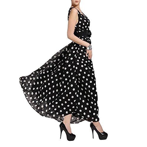 Scott-Vincent Borba Haute Couture Polka Dot Chiffon Maxi Dress,Black [並行輸入品]