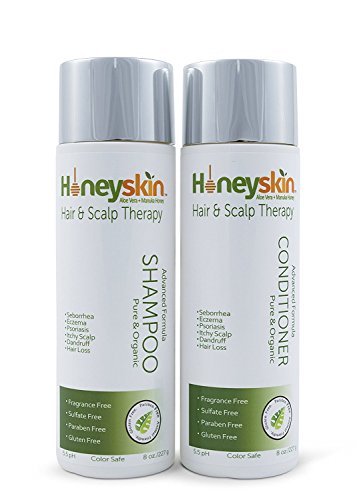 Dry Scalp Treatment - Organic Shampoo & Conditioner Set - Seborrhea Dandruff Itchy Scalp Natural Ingredients Manuka Honey Aloe Vera Paraben & Sulfate Free Color Safe (8 oz) by Honeyskin Organics [並行輸入品]