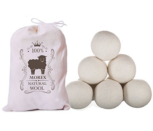 Morex Wool Dryer Balls Anti-Static All Natural Reusable Non-Toxic - Natural Fabric Softener Set of 6 Balls [並行輸入品]