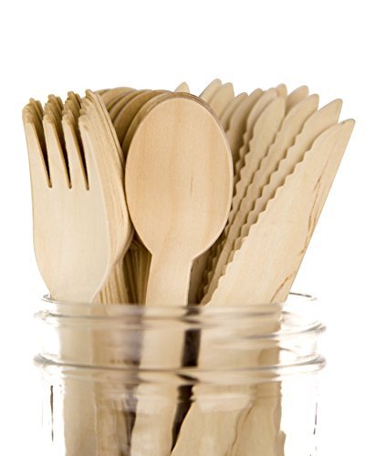 Woodblūm's 200pc Biodegradable Disposable Wooden Cutlery Set [並行輸入品]