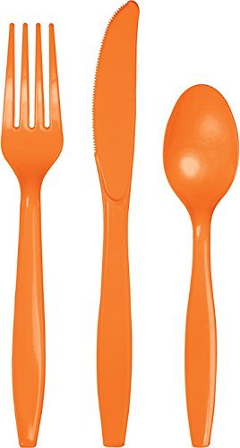 Touch of Color Premium Plastic Cutlery Assortment (Forks Spoons Knives) Sunkissed Orange 24-Count [並行輸入品]