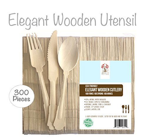 Elegant Disposable Wooden Utensils Cutlery Set Eco-Friendly Biodegradable Compostable Flatware For your Special Event Party Wedding 300pc 100 Forks 100 Spoons 100 Knives 7.75 Length GO GREE [並行輸入品]