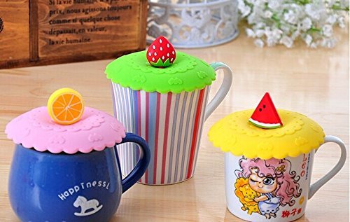 Rimobul 3 pcs Lovely Watertight Silicone Cup Lid Cover Mug Cap Block dust Leakproof Lid (Fruit) [並行輸入品]