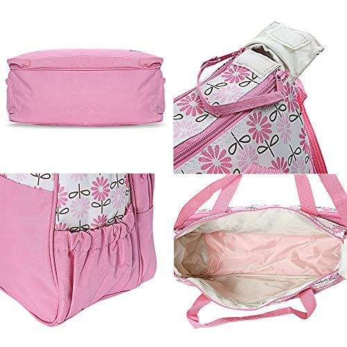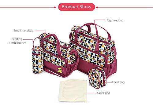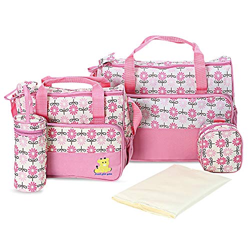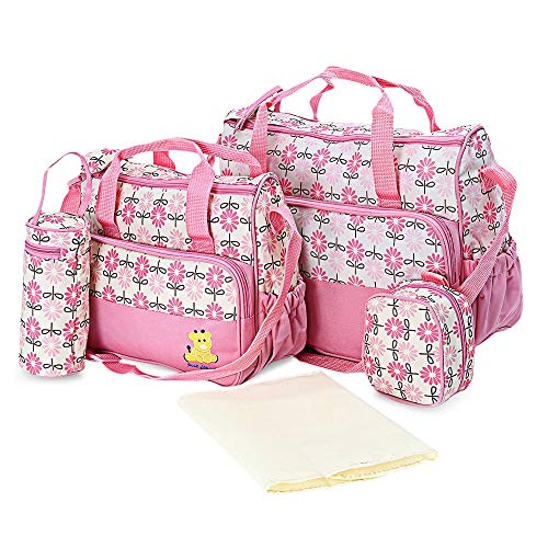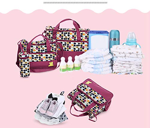 5 個のおむつバッグ セット ママ、乳児のおむつ交換バッグ、トートバッグ、ハンドバッグ、ボトル ホルダー、食品袋、おむつパッド設定すべての屋外の旅行のために