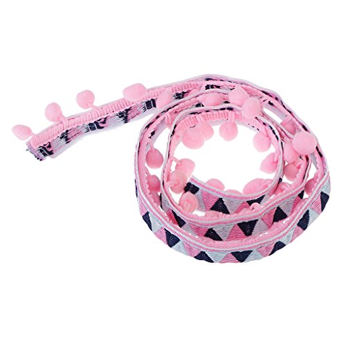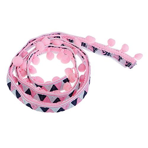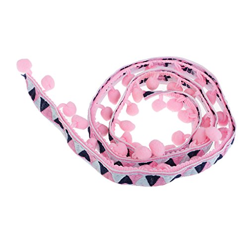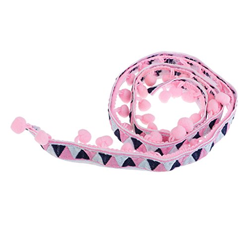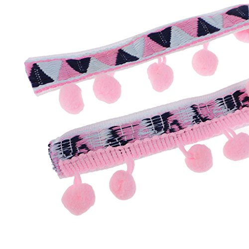 Perfk 手芸用品 ジャカードリボン フリンジ トリム ポンポンボール 1ヤード 民族風 40ミリメートル 全2種類 ソフト - ピンク