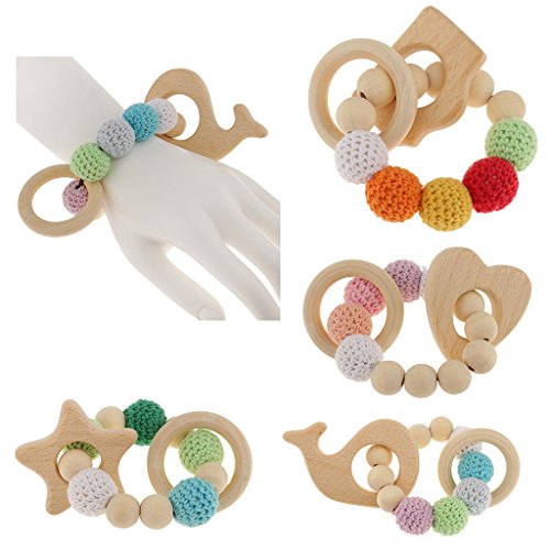 Perfk 編みビーズ ブレスレット ティースリング 赤ちゃん 哺乳おもちゃ つかむ鍛え 全4種 - #4