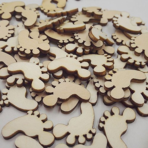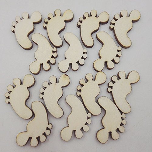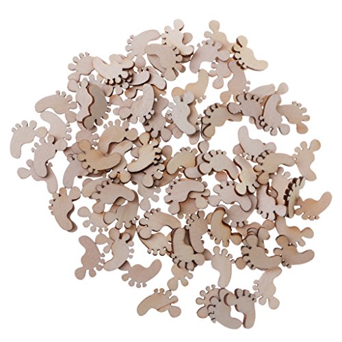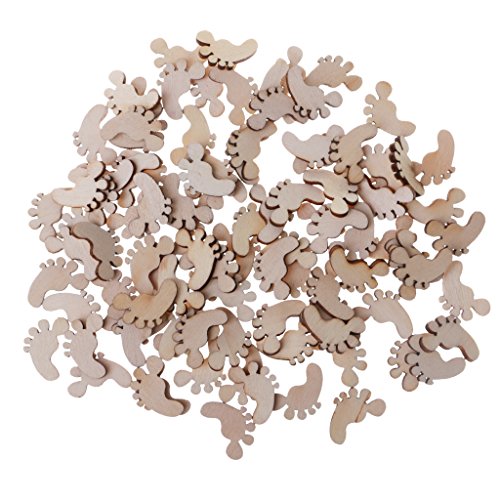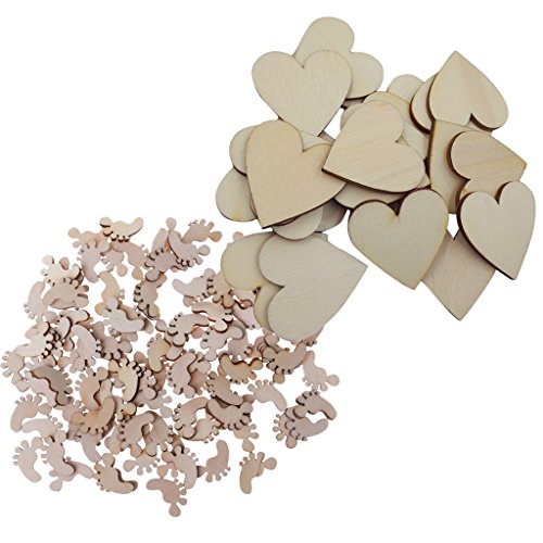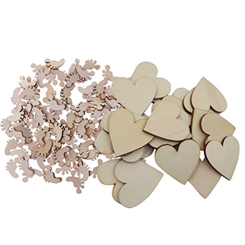Perfk 150個 魅力的 木製 ベビーフィート ラブハート オーナメント クラフト装飾
