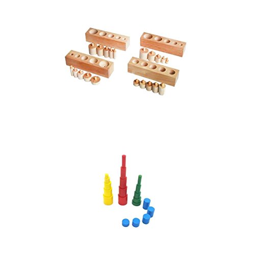 - モンテッソーリ感覚材料 - ノブレスシリンダーファミリーセット、ノブベッドシリンダーブロックセット。