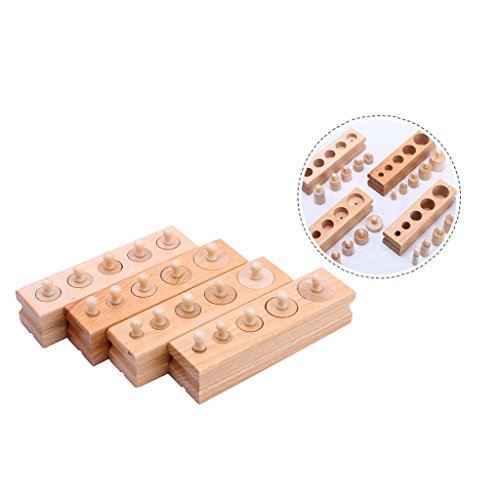 Perfk モンテッソーリ 感覚玩具 ノブレス シリンダー セット + 木製 ブロック 積み木 子供 知育玩具 幾何学認知