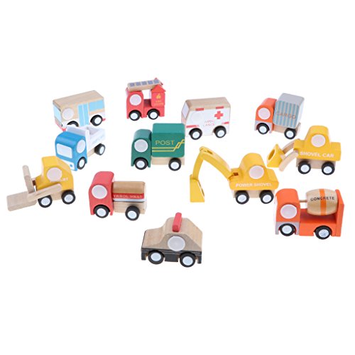 Perfk バス 貨物 スクールバス 消防車 救急車など 子ども 木のおもちゃ 車モデル おもちゃ 認知おもちゃ