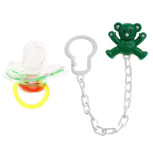 Perfk 全3色 幼児のおしゃぶりホルダー おしゃぶり チェーン ベビーカー収納 便利 - 緑