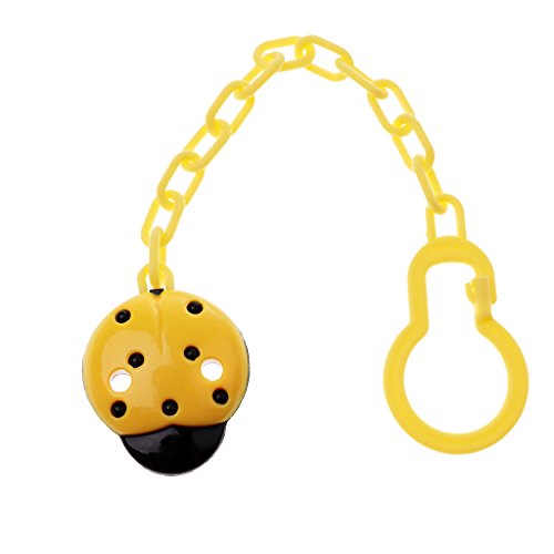 Perfk 全4色 赤ちゃん おしゃぶりホルダー プラスチック レディバグの型 便利 約22cm - 黄